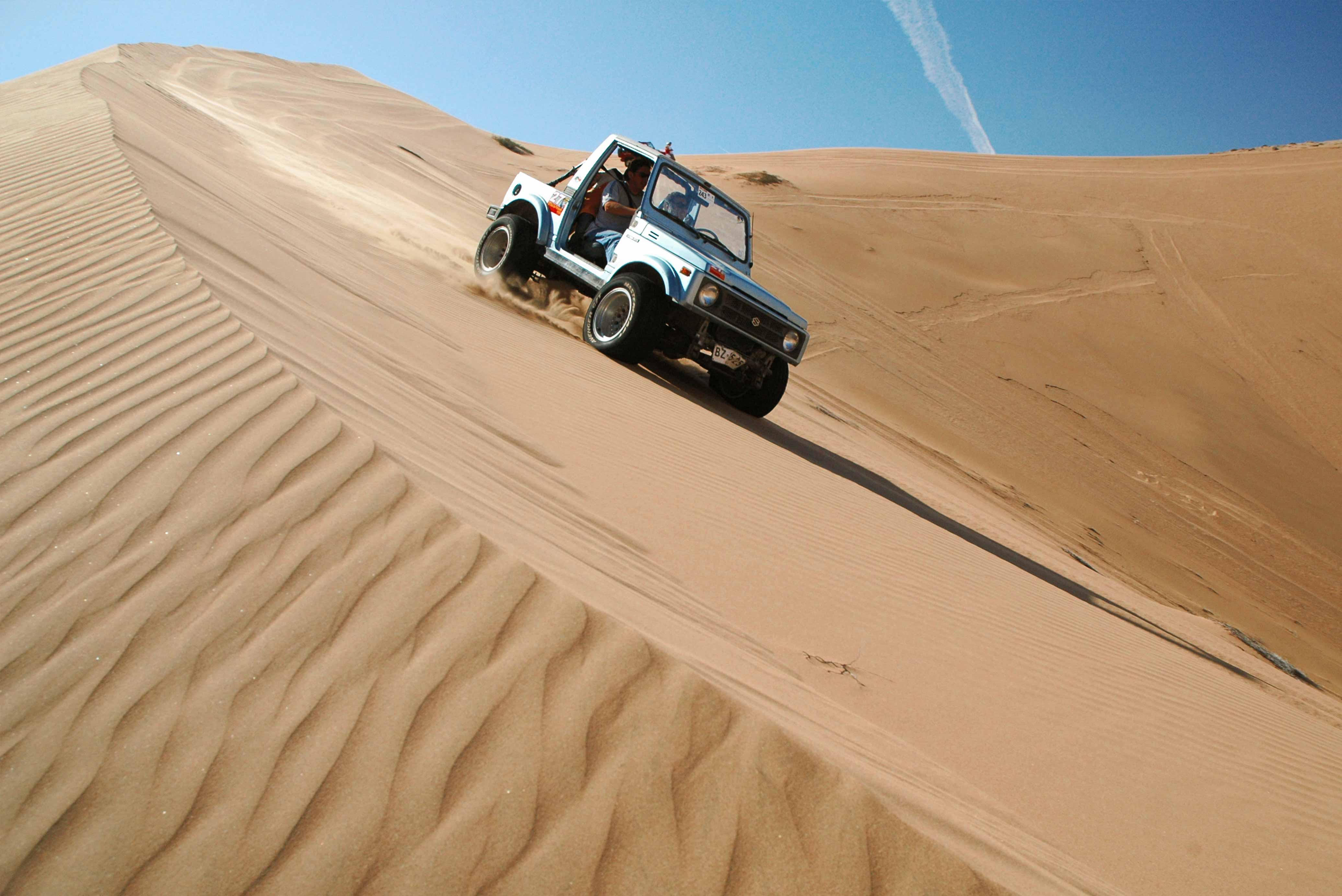Salida a las 08:30 horas desde el hotel de Copiapó para dirigirnos a Puesto No1. En este lugar desiflamos los neumáticos para subir las dunas. A las 10:30 horas aproximadamente, nos dirigiremos a través de las dunas hacia la Mina San José, lugar del Rescate de los 33 mineros. Breve Snack para continuar duneando para seguir las huellas del Dakar para llegar a la Duna más alta de Latinoamérica que es el cerro/duna Medanoso. A las 14:00 horas, almuerzo en la Duna Medanoso. A las 15:30 horas, comienzo de actividades entre las cuales se destacan: clases básicas de conducción en arena, Sandboard o recorridos fotográficos. Finalizando cerca de las 18:00 horas.